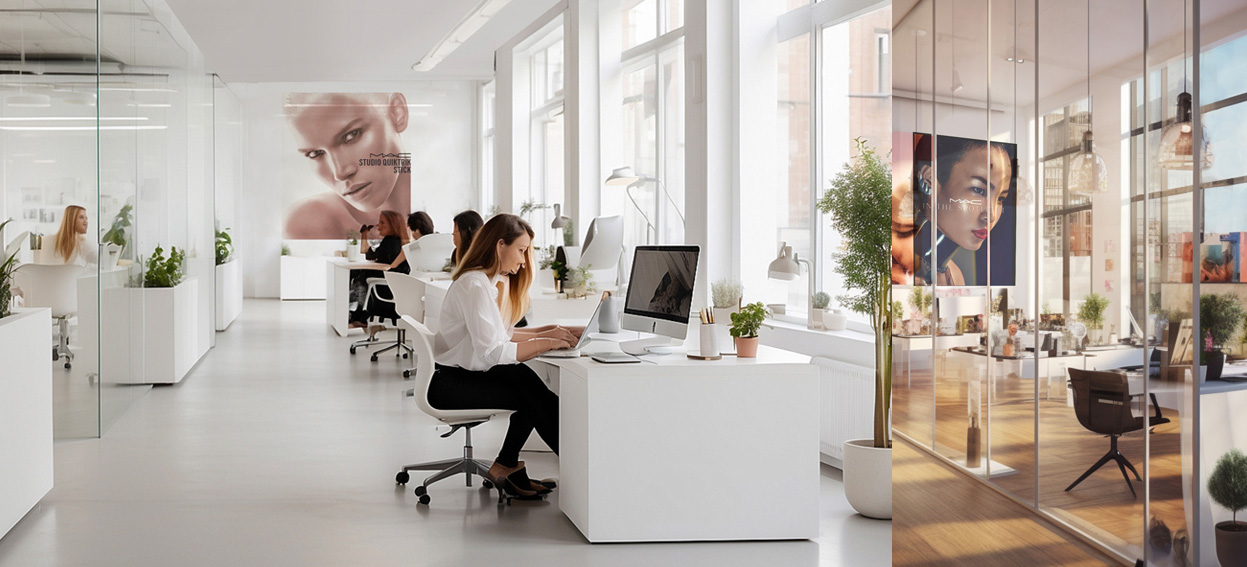 neue Bürogestaltung in Betracht der sich ändernden Arbeitswelten, home-office, etc… Konzepte für Estee Lauder Offices Munich, in Zusammenarbeti mit Jürgen Johannes Architekt